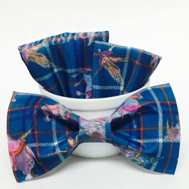 【BOW TIE(蝶ネクタイ)】BLUE CHECK(チーフ付)