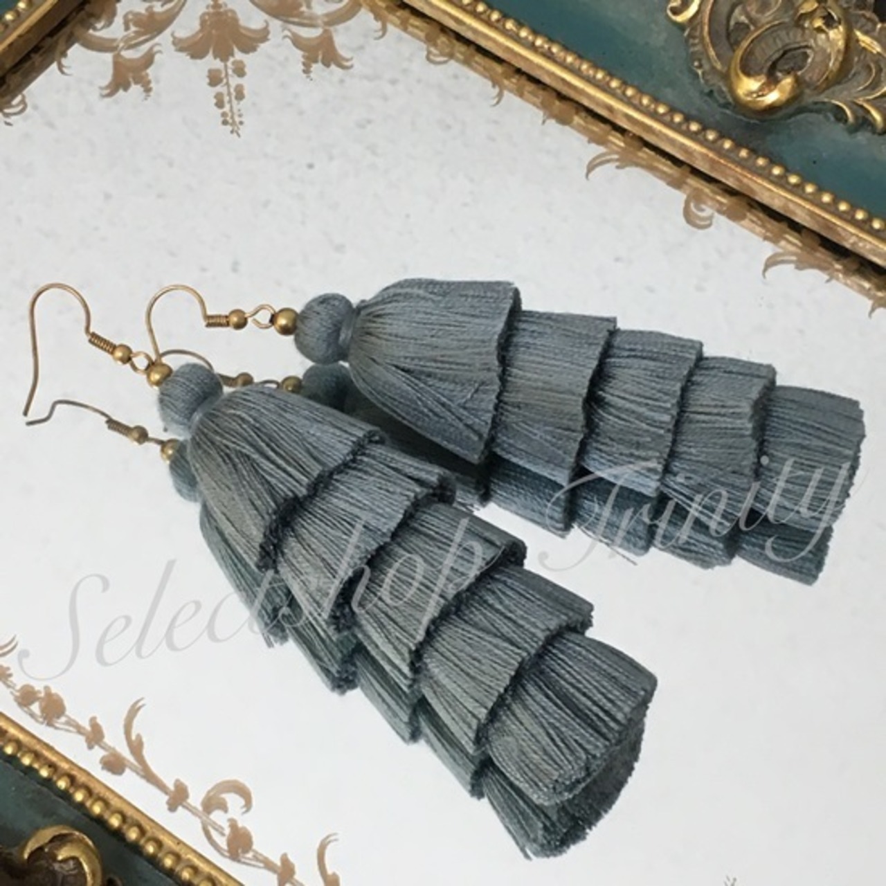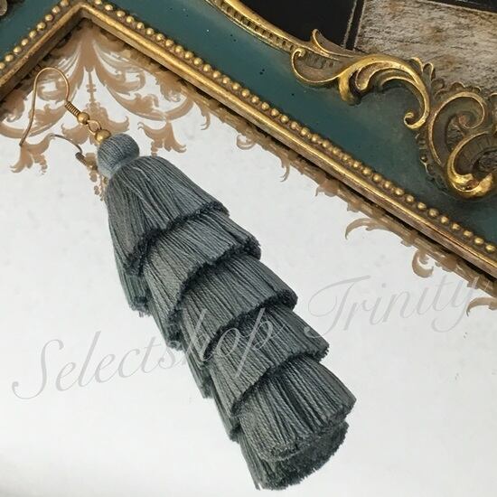 【IMPORT HANDMADE】Solid Gray Five Layered Tassel Earrings