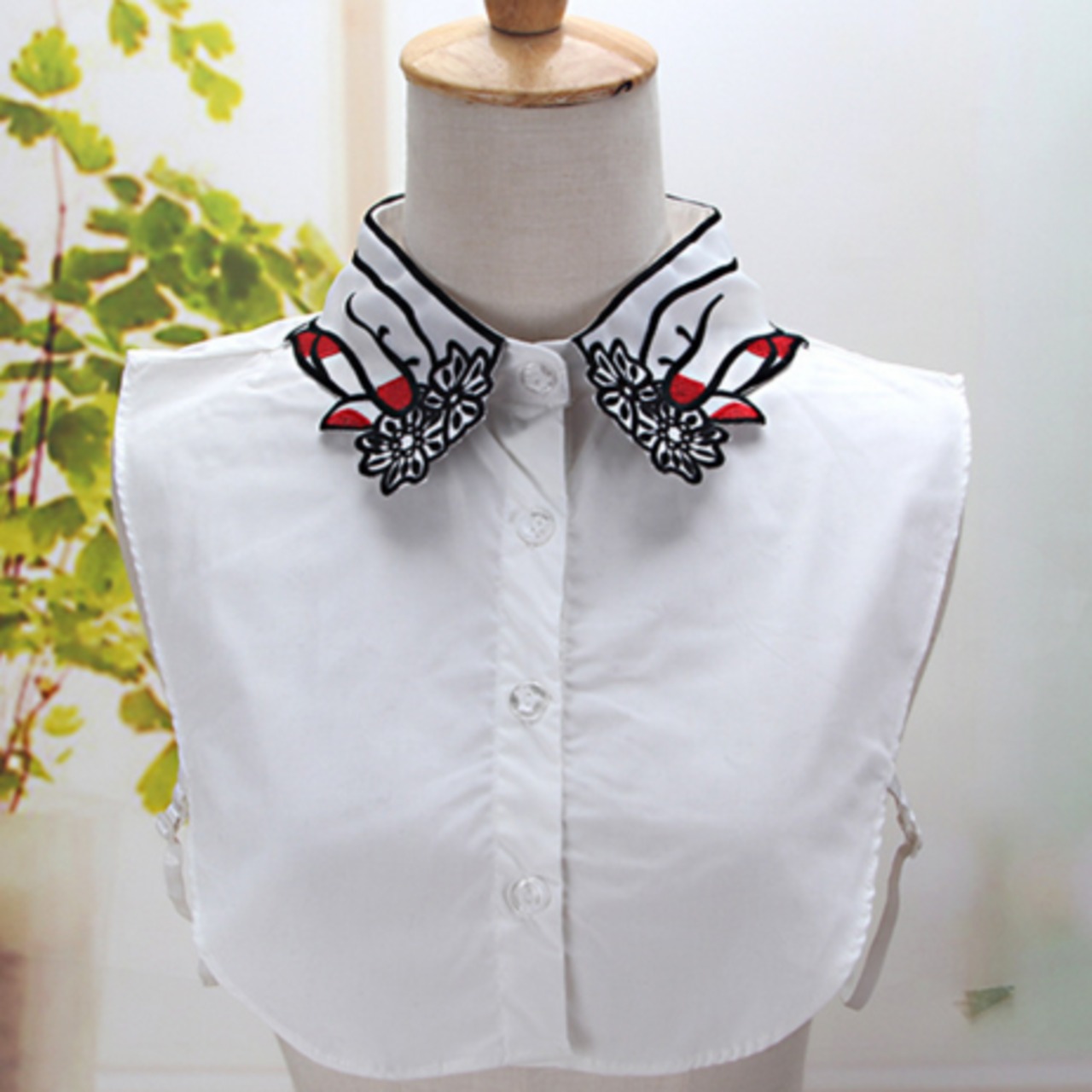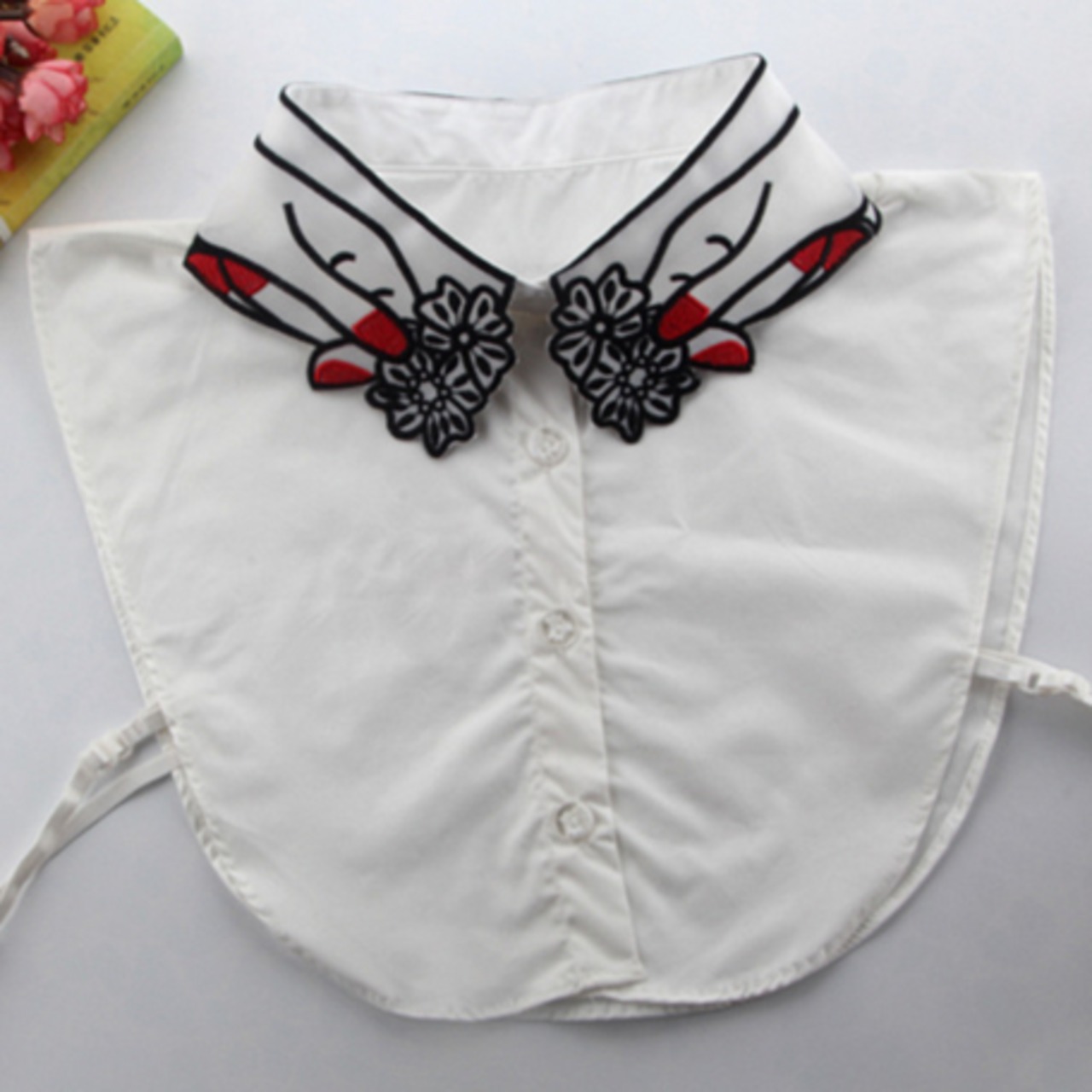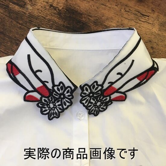 花をつまんだ手の刺繍が個性的な付け襟です