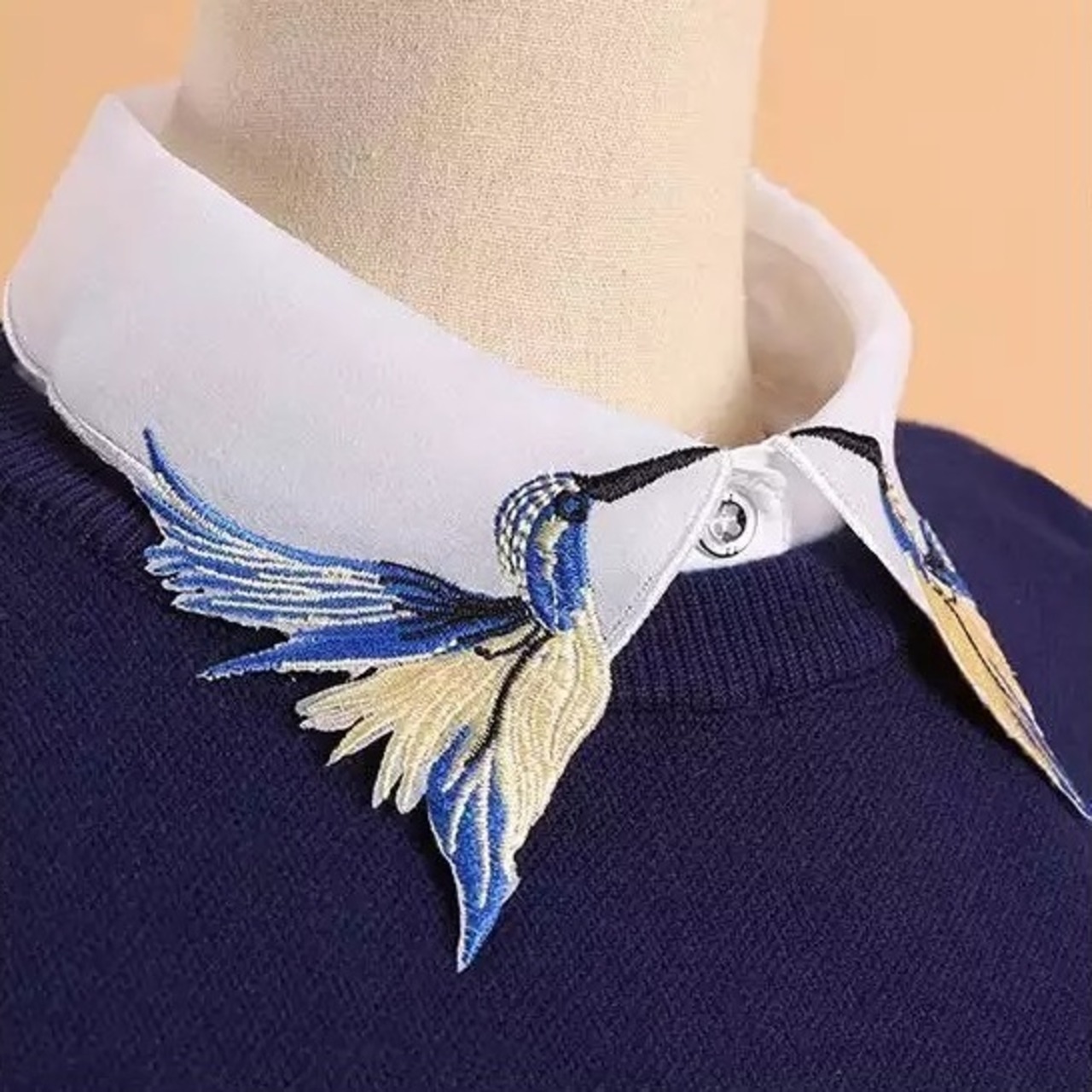 青い鳥刺繍の付け襟です