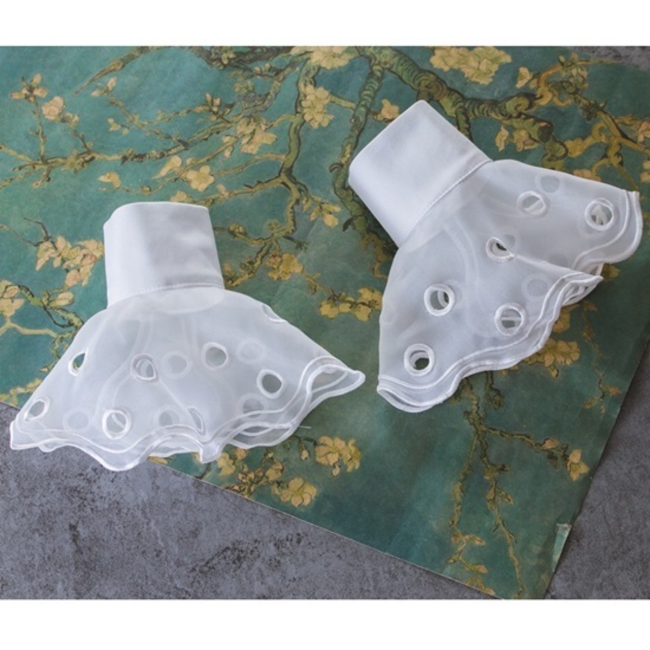 ドットの波打つフリルがかわいい付けカフスです