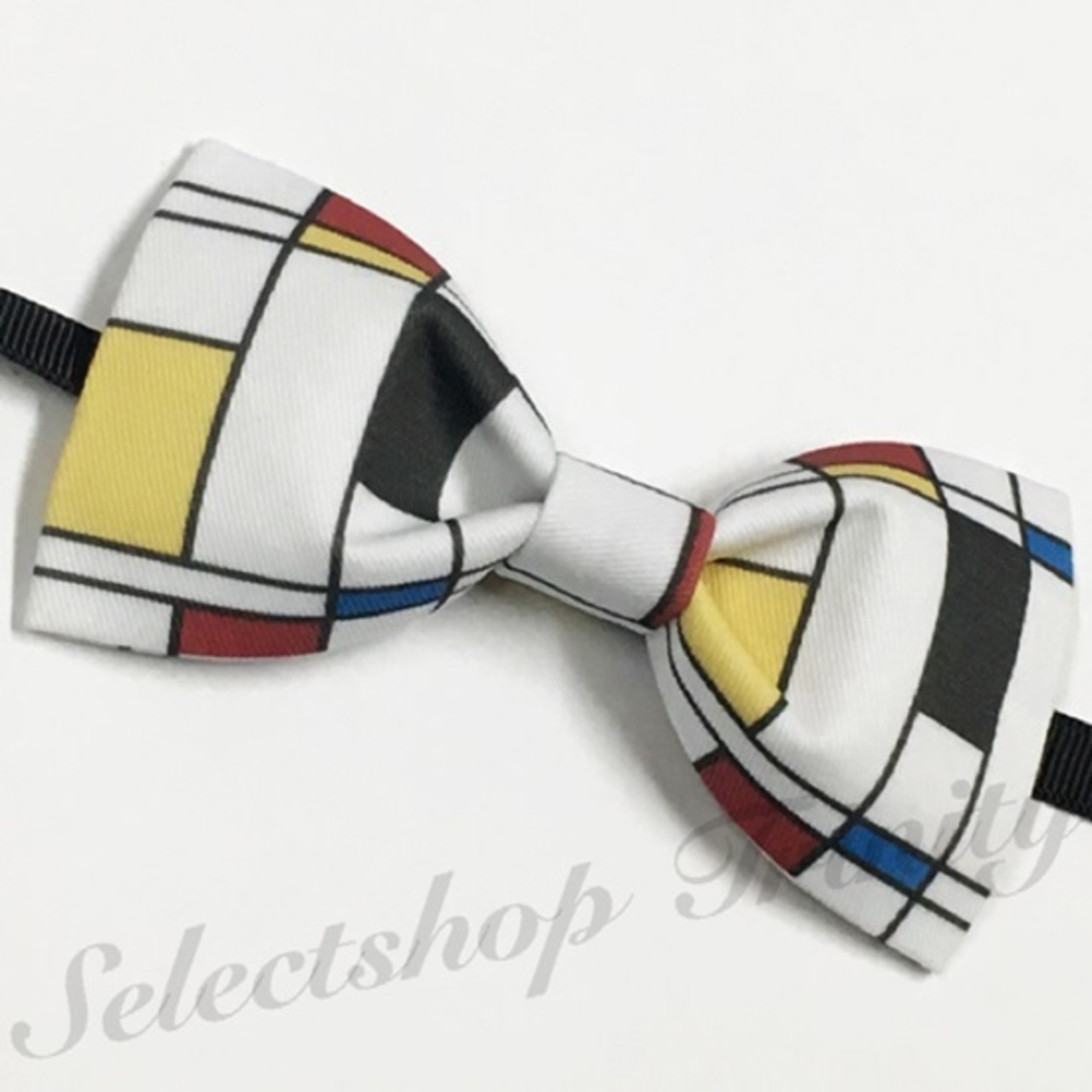 モンドリアンの”コンポジション”風プリントのボウタイ(蝶ネクタイ)です