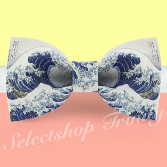 葛飾北斎の浮世絵『富嶽三十六景』神奈川沖浪裏をミラープリントしたボウタイ(蝶ネクタイ)です