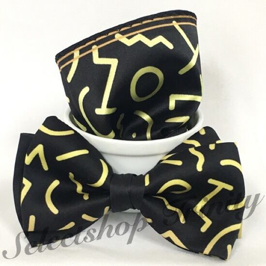 シンボルプリントのボウタイ(蝶ネクタイ)とポケットチーフのセットです