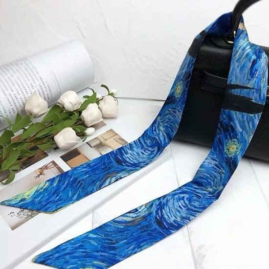 ゴッホの名作「星月夜」柄のツイリースカーフです