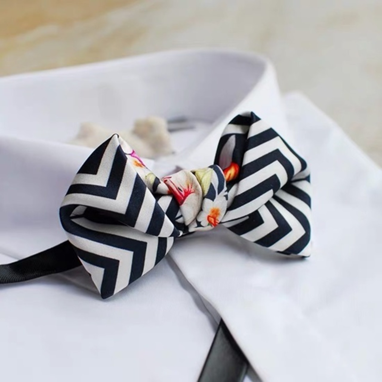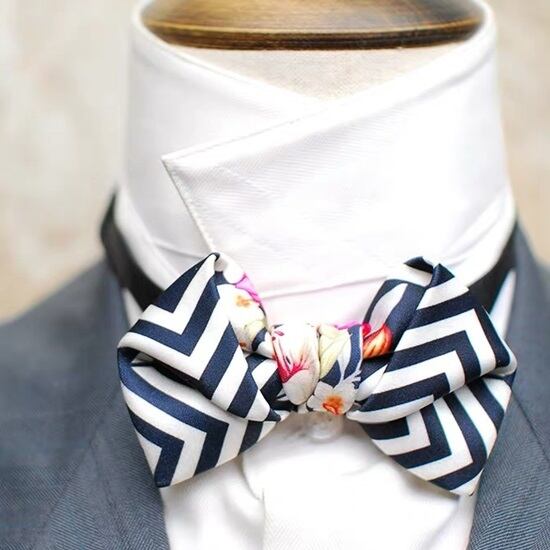ストライプと花柄のアートなボウタイ(蝶ネクタイ)です