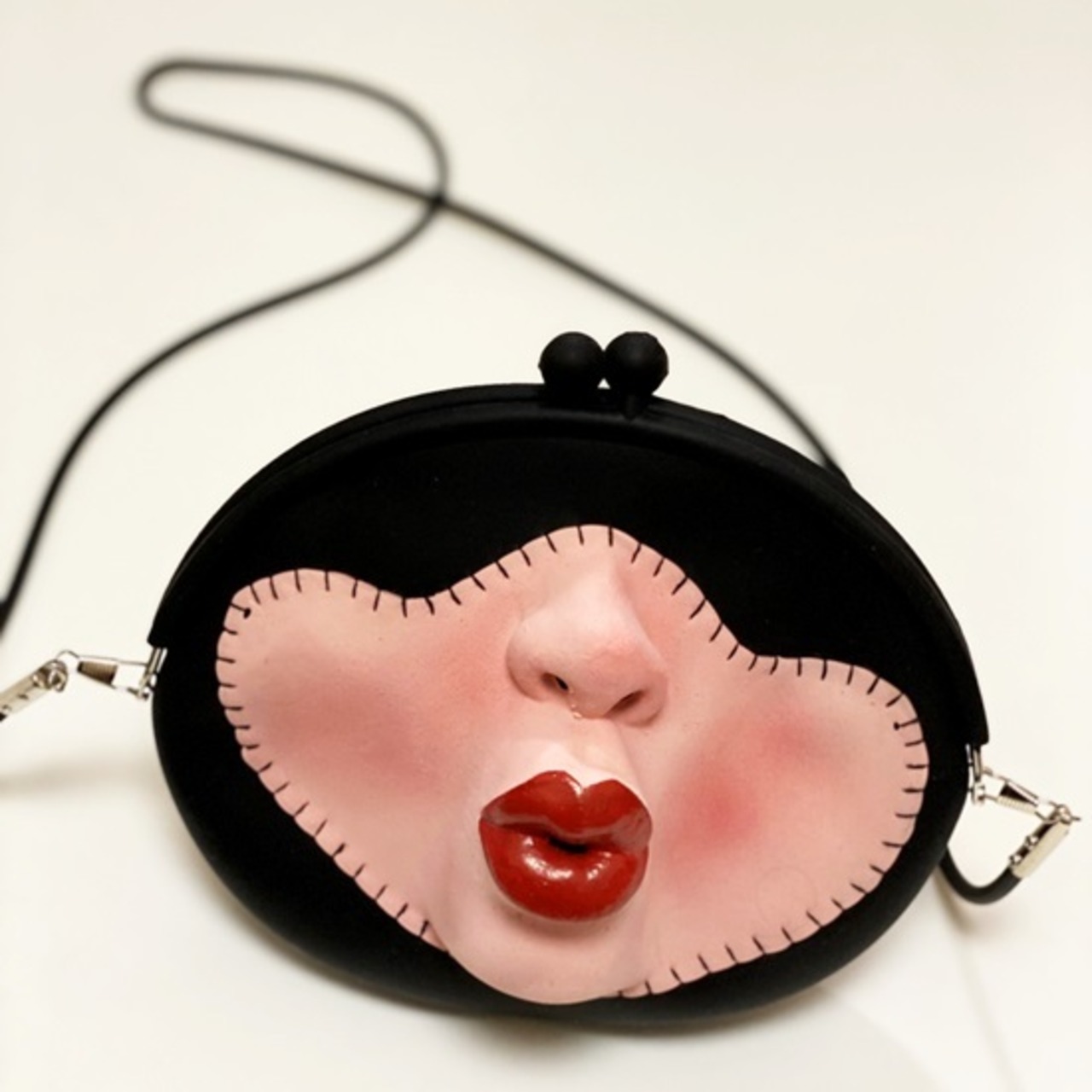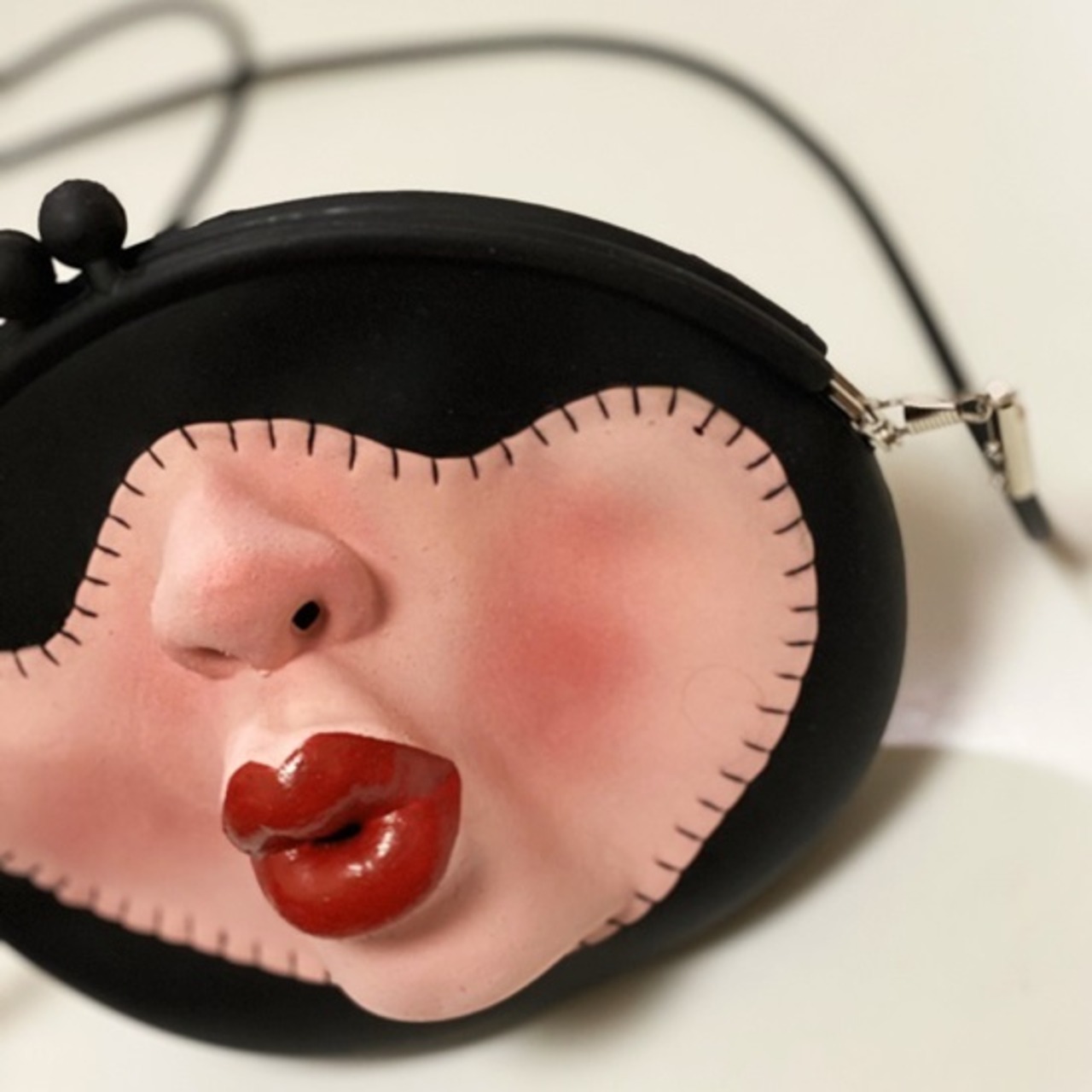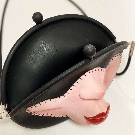立体的なフェイスアップリケがついたラバー素材のショルダーバッグです